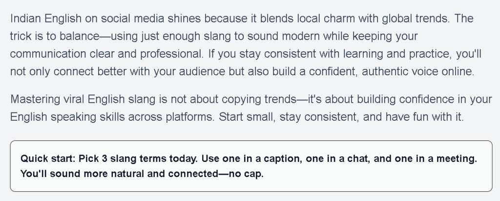 Have you ever noticed how Indians on social media often mix global slang with their own unique English expressions? This fusion makes conversations entertaining and authentic but it also raises an important question: how do you use slang smartly without sounding forced or unprofessional? Let’s break it down step by step.